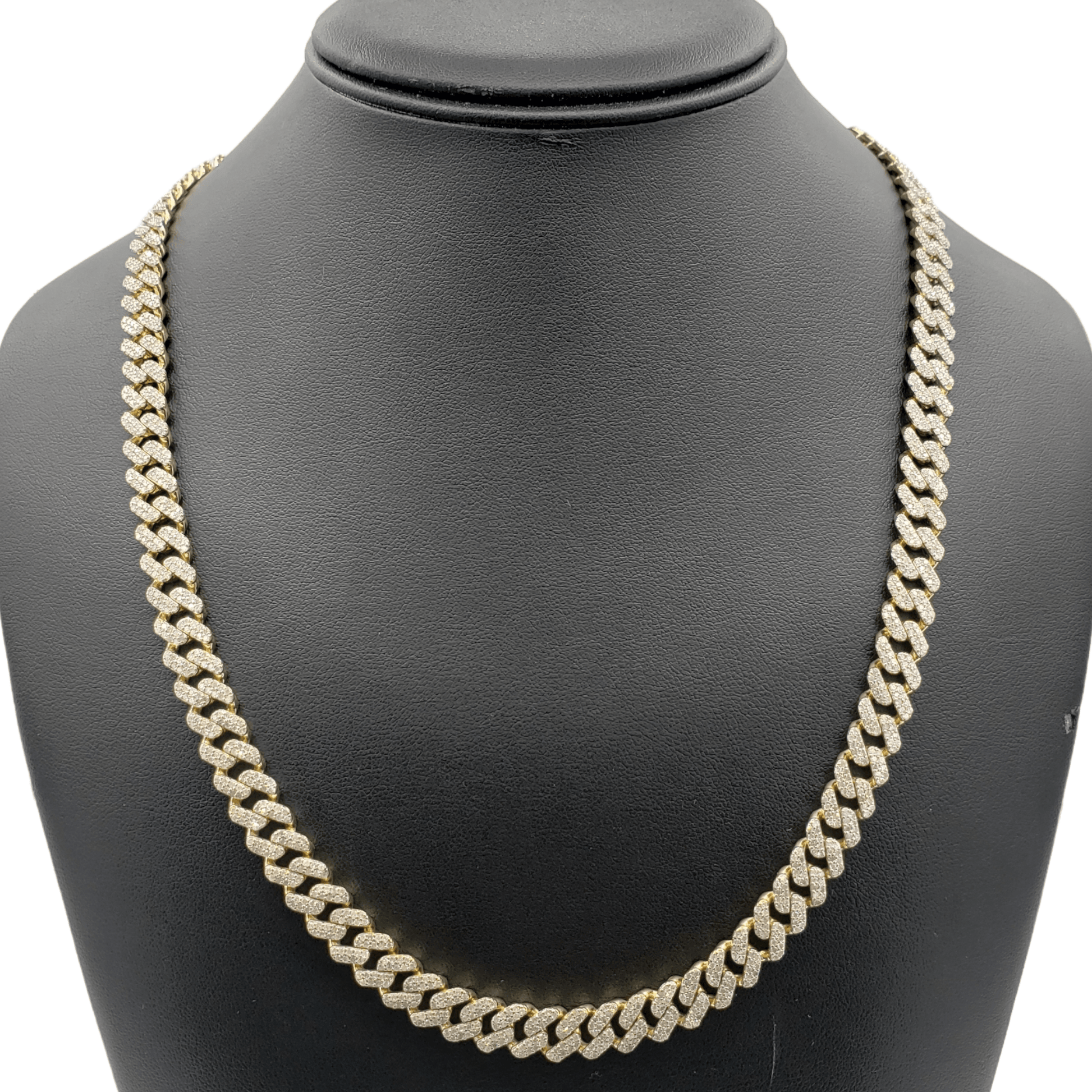 Handcrafted with precise detail, high quality, Solid Iced Out Miami Cuban Chains. Available in a variety of widths and lengths- weight (grams) is provided once options are chosen. 100% 10k Gold.