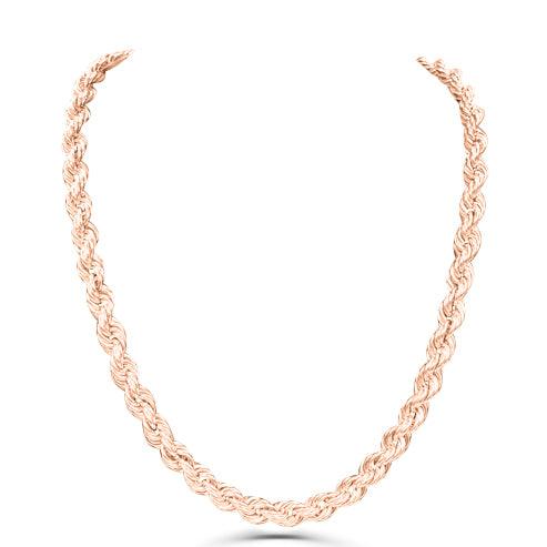 This 10K solid rose gold rope chain is a luxurious and timeless accessory. Made with high-quality materials, it exudes elegance and sophistication. Perfect for everyday wear or special occasions, it will elevate any outfit and make you feel confident and stylish. Don't miss out on this must-have statement piece!