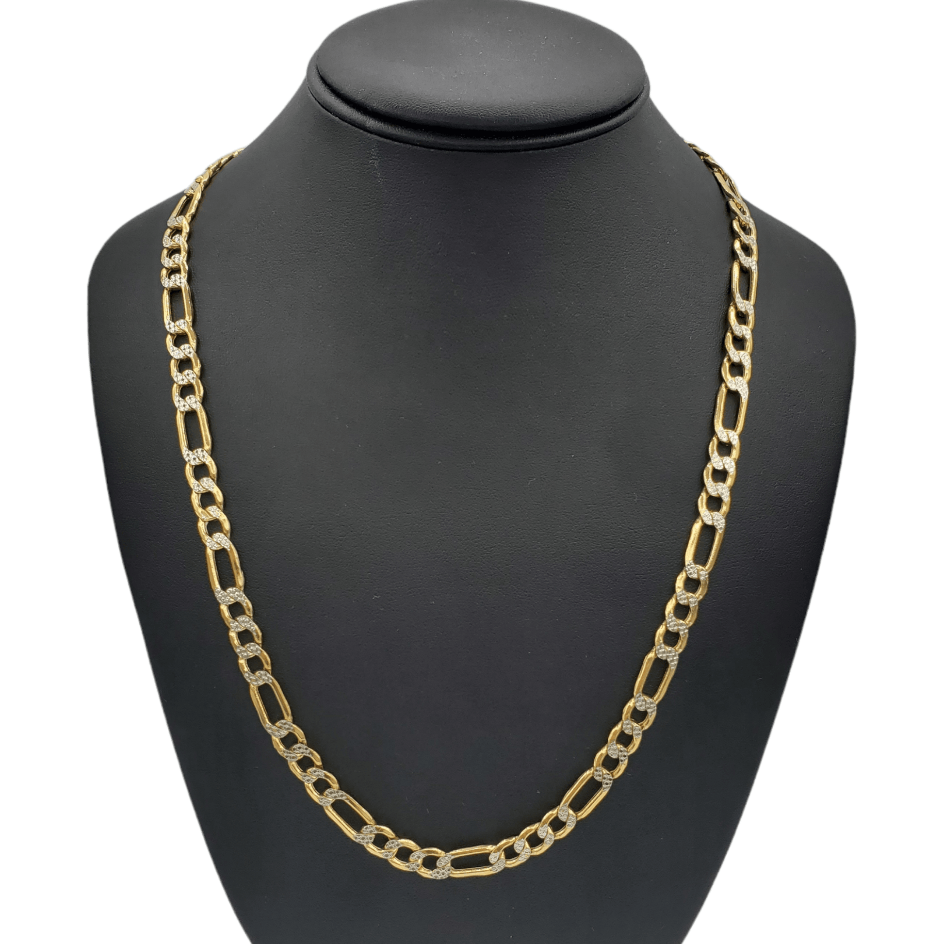 14K Gold- Hollow Figaro Diamond Cut (Pave) Chain