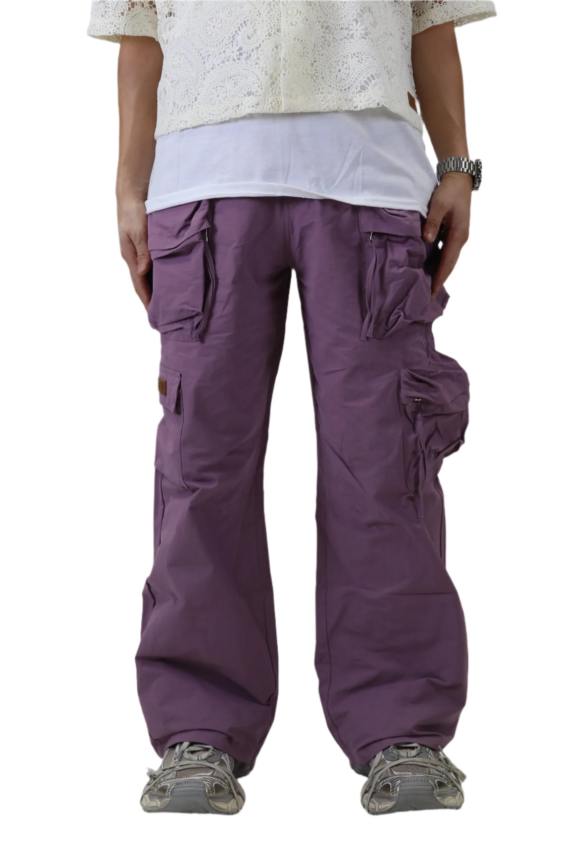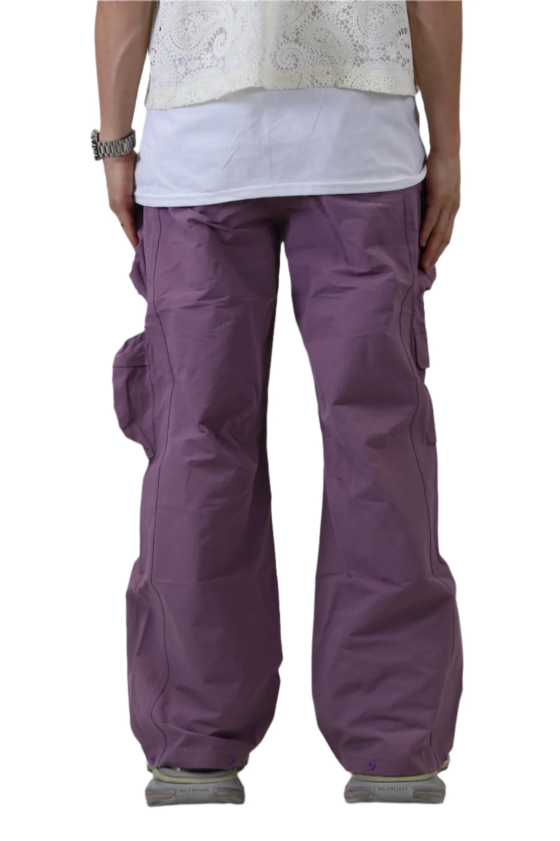 - Woven Nylon Twill Wide Leg Baggy Multi Cargo Pants.