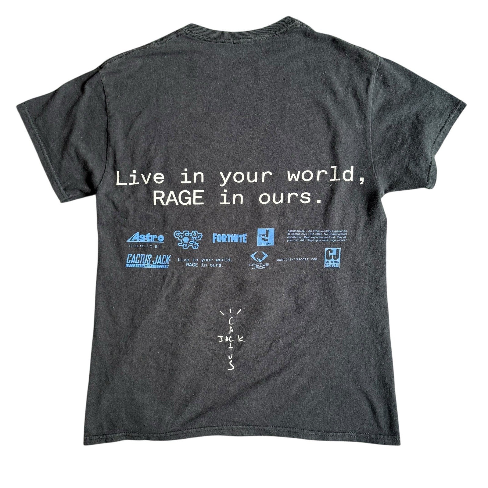 Cactus Jack Travis Scott x PlayStation T-shirt. This shirt is in great condition and has been well-cared for. It features a unique design that combines the iconic Cactus Jack and PlayStation logos. The shirt is made of high-quality, comfortable material that feels great against the skin. Perfect for any Travis Scott or PlayStation fan! Grab this awesome piece of merch before it's gone!