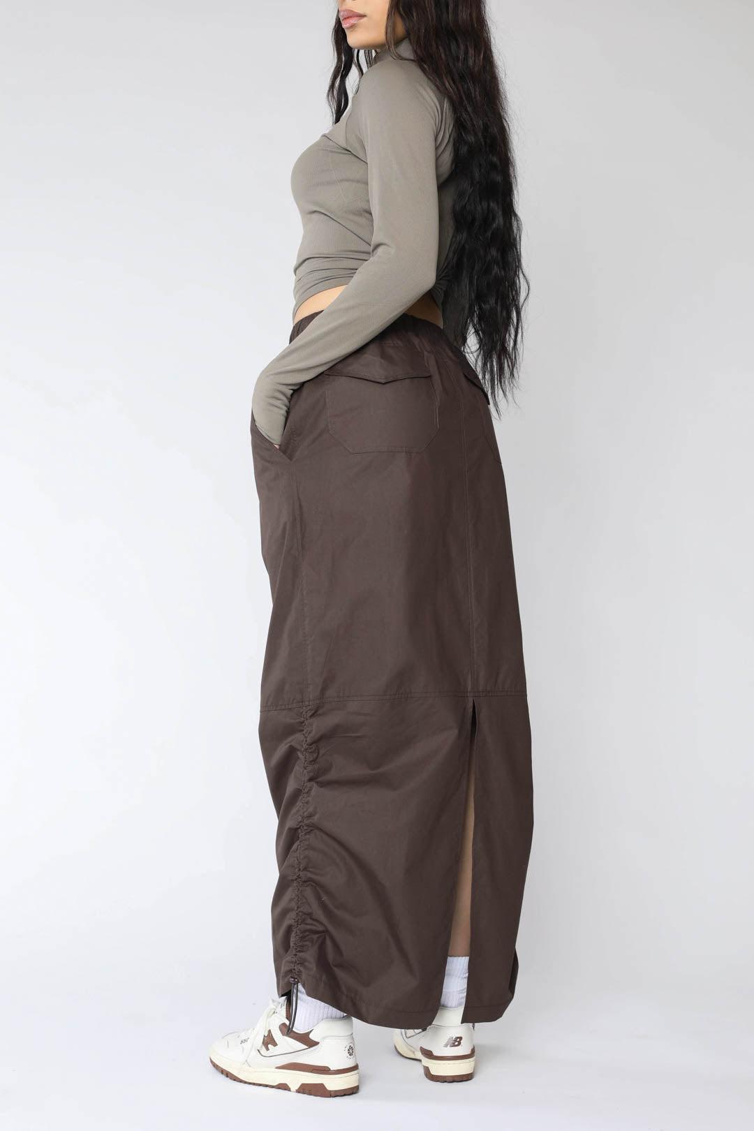 Cargo skirt upcycled from fabric we discovered in an abandoned 90's manufacturing facility.