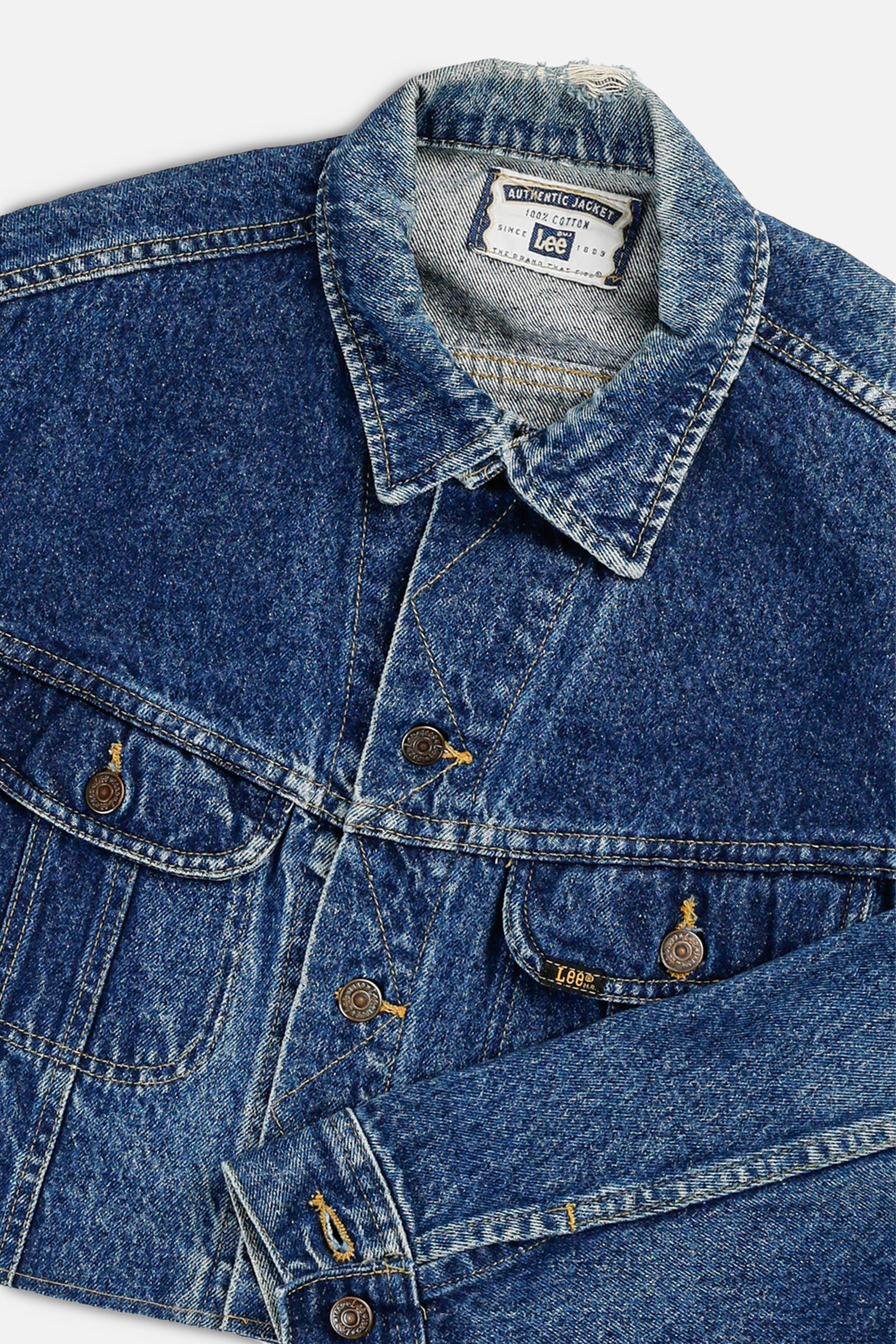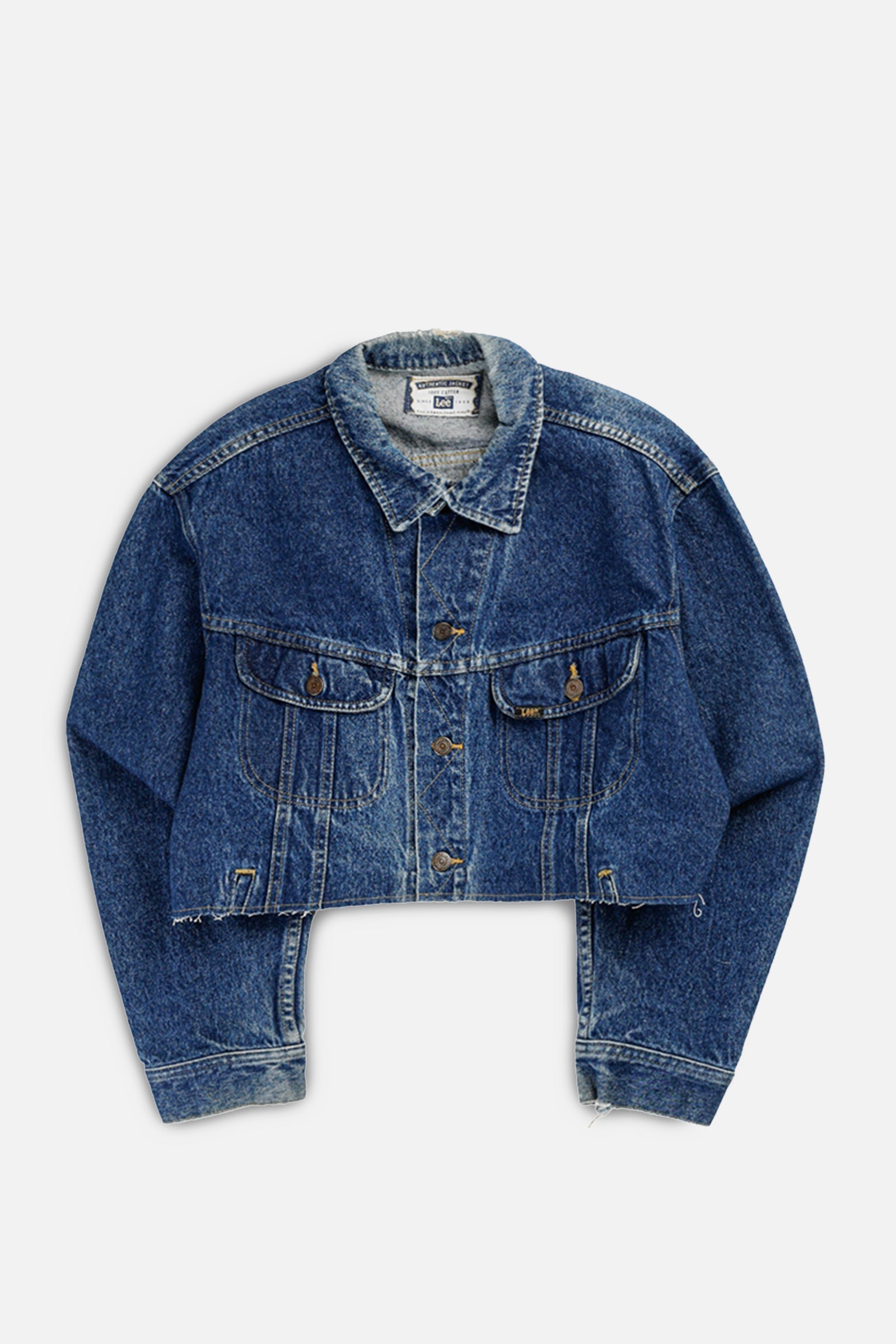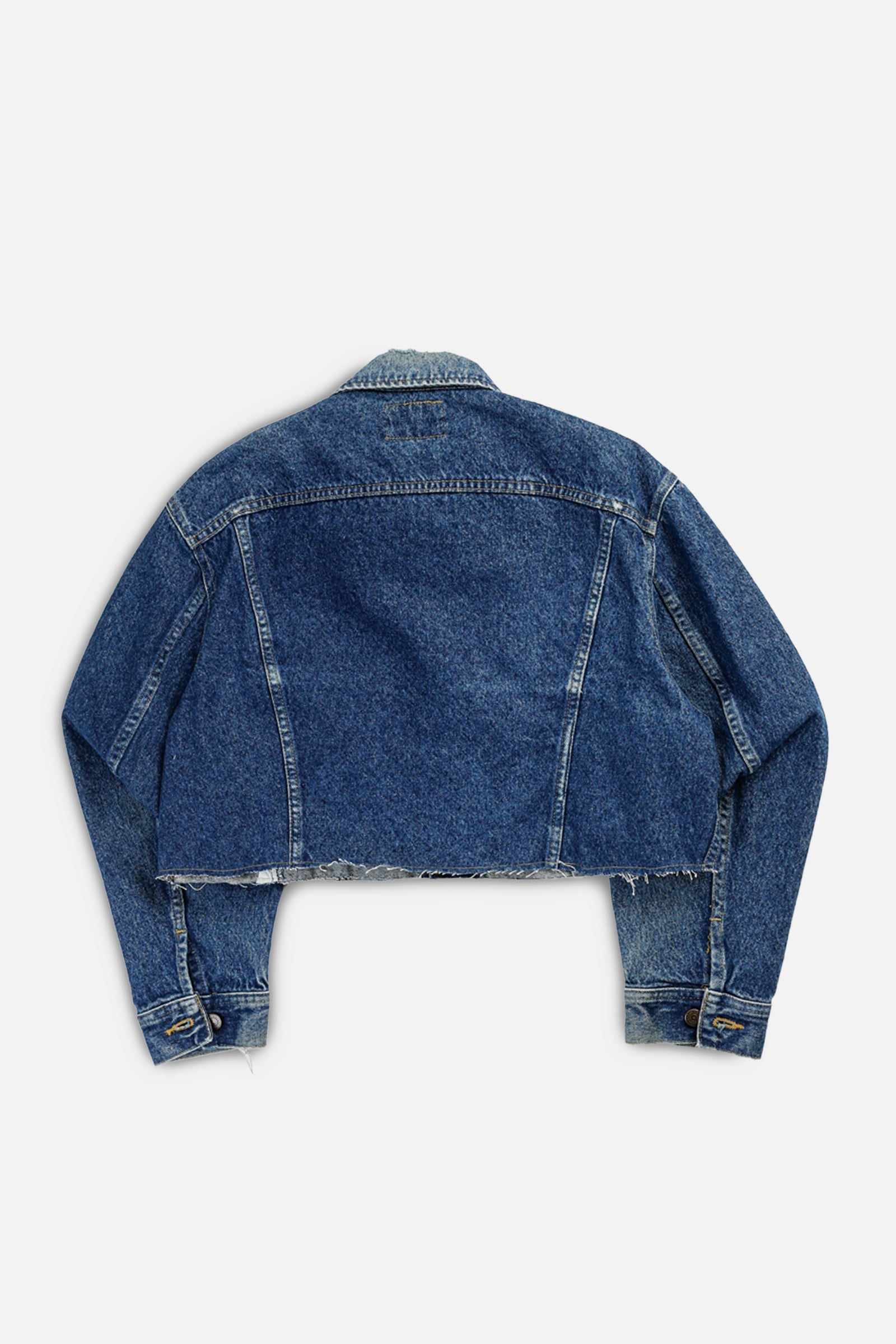 Vintage rework Lee crop denim jacket with raw edge hem.